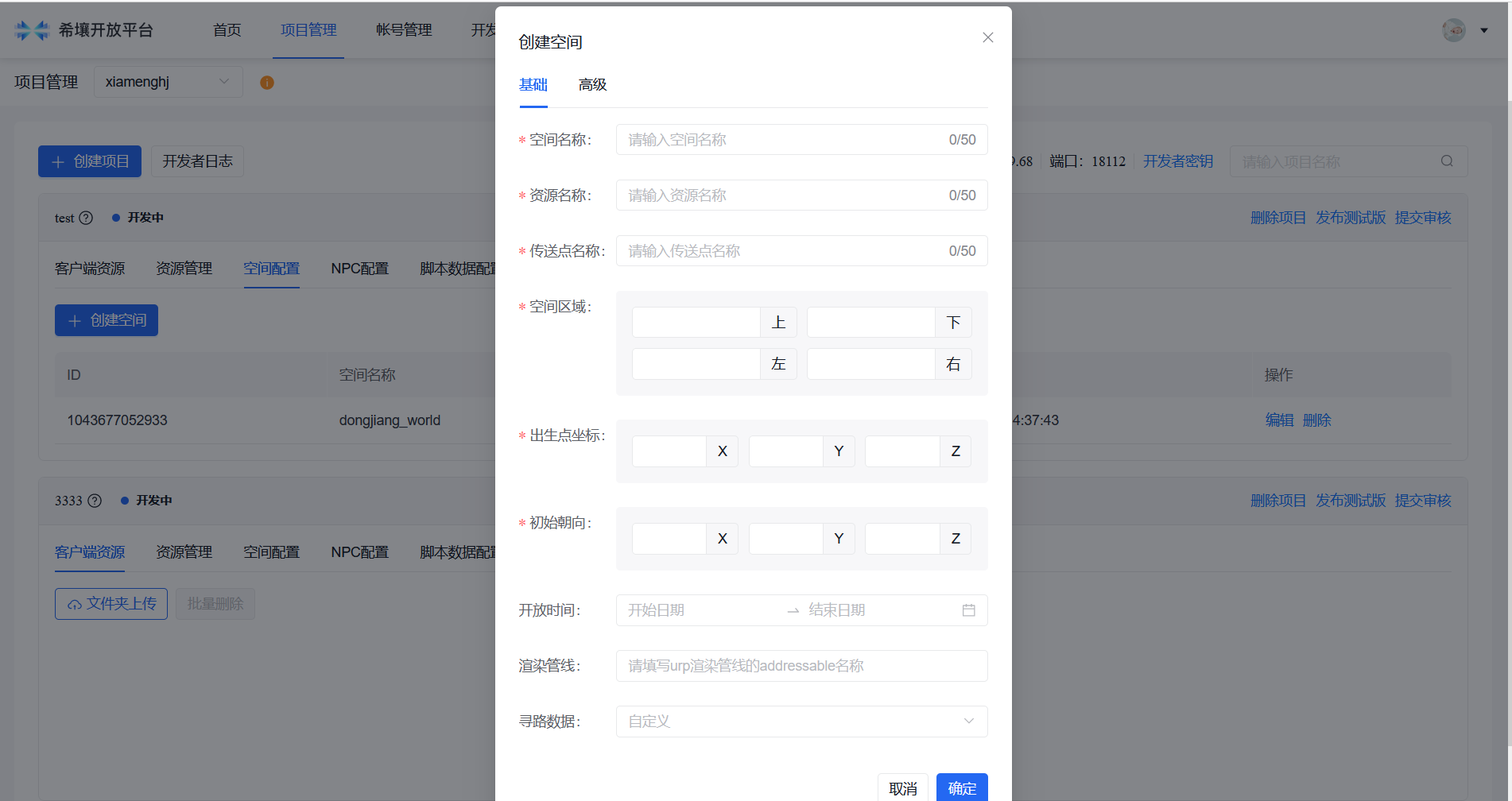 空间为底座的核心能力,用于生成前副本的基础核心数据,用于开发的内容挂载
