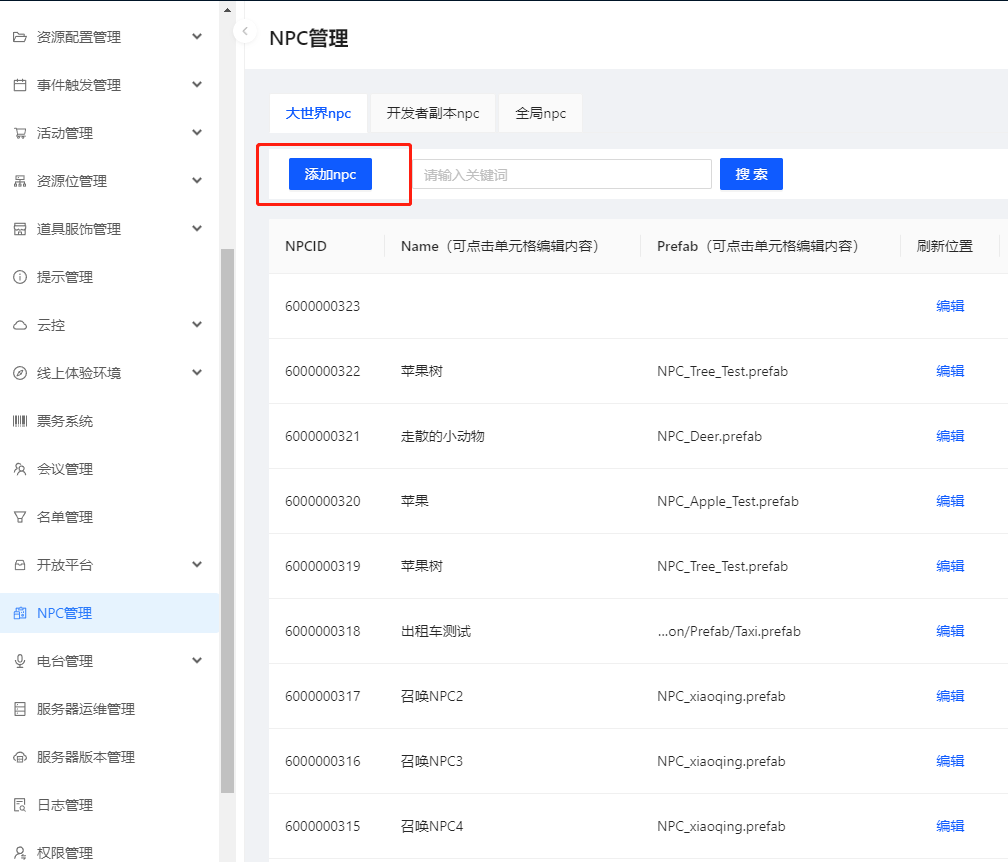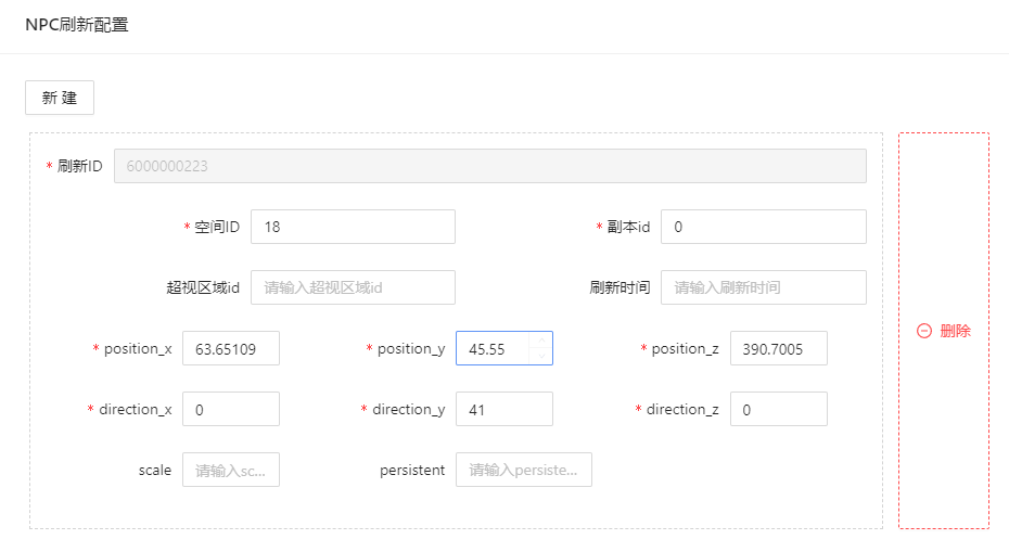 3.2 Npc坐标配置,如果是Npc采集掉落物则不需要Npc刷新配置