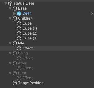 2.4 特效配置 创建四个空预设命名对应的 Idel Using After Died(暂无)内部可放置对应状态时播放的特效特效。
