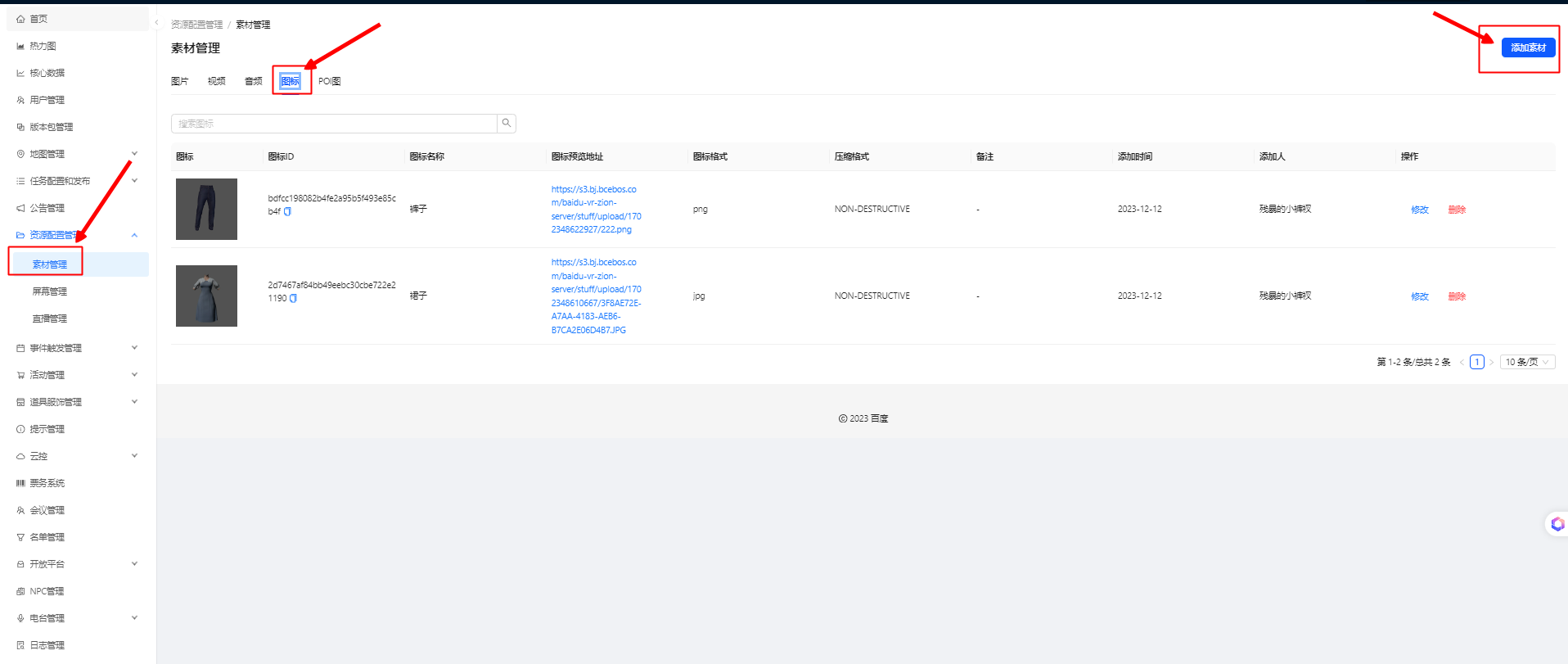 在运营管理后台——素材管理——图标页——添加素材进行道具图标的添加(建议尺寸为250*250的png图片)